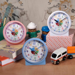 Материал и цвет: Корпус будильника сделан из качественного ABS пластика. Форма корпуса и расположение батарейного отсека в нижней части корпуса делает этот будильник устойчивым к опрокидыванию. Стекло – пластиковое. Циферблат будильника разработан для упрощения процесса обучения детей определению времени. На циферблате есть часовые, в том числе в 24-часовом формате, и минутные деления.