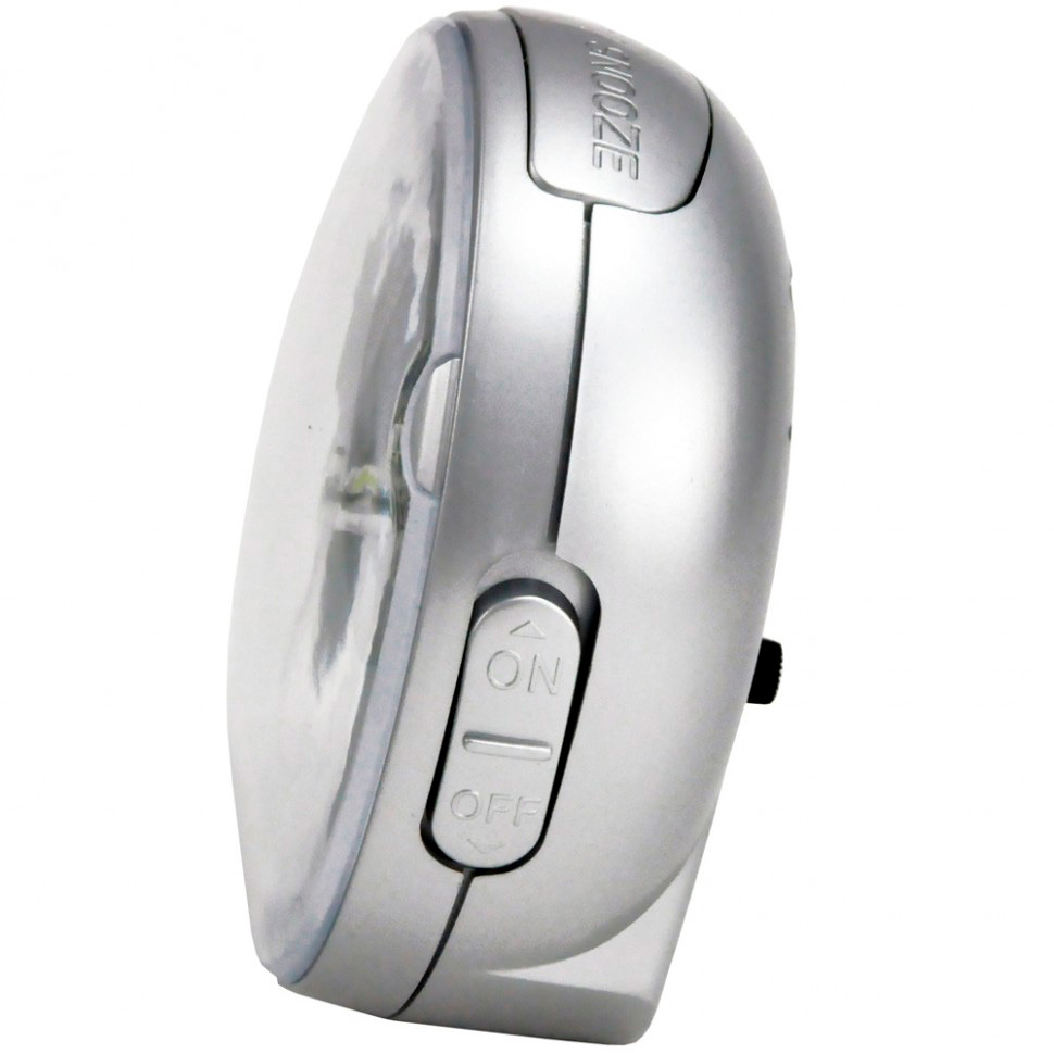 Функции: У будильника пикающий звонок с нарастающей (в четыре ступени) громкостью. Функция повтора сигнала (snooze) сработает примерно через 5 минут. Светодиодная подсветка голубого цвета. Подсветка включается кнопкой, которая удобно расположена сверху корпуса и продолжает работать в течение 5 секунд после нажатия кнопки.