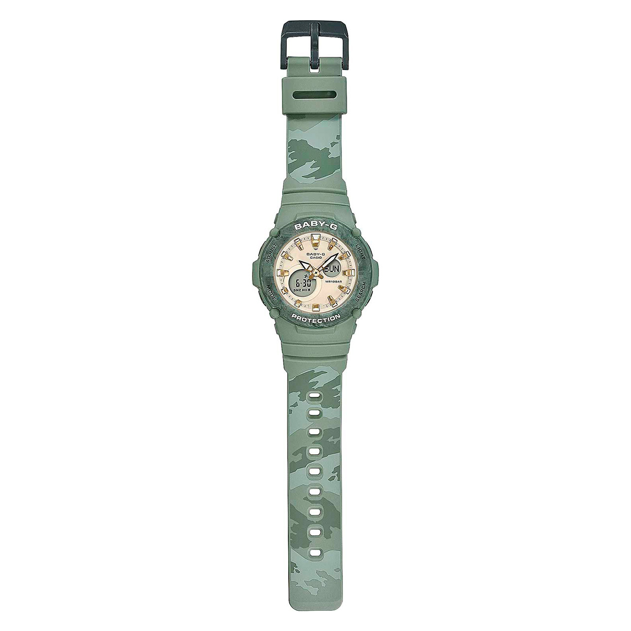 Ремешок: Ремешок выполнен из полимерного материала бледно - зелёного, украшен камуфляжным рисунком, стандартная застежка.