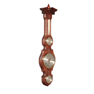 Барометр от российской компании "Бриг+". Корпус изготовлен из высококачественного массива дерева, цвет орех. А металлическая фурнитура, которая изготавливается только из полнотелой латуни, добавляет изысканности. Метеостанция настенная: барометр, часы, гигрометр и термометр, механизмы производства Германии. Размер: 670x175x68 мм. Диаметр барометра: 70мм. Диаметр часов: 130 мм. Диаметр гигрометра: 70 мм. Длина термометра: 176 мм.