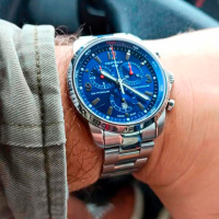 Корпус: Корпус из нержавеющей полированной/матовой стали. Синий циферблат с серебристыми стрелками и рисками. Люминесцентное покрытие часовой и минутной стрелок. Сапфировое стекло с антибликовым покрытием. Диаметр 44 мм. Водостойкость 200 м.