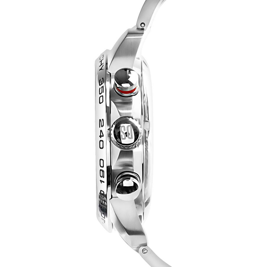 Функции: Индикация часов, минут при помощи центральных стрелок. Хронограф. Малая секундная стрелка и окошко даты в положении " 6 часов", тахиметрическая шкала по безелю.