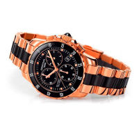 Корпус: Корпус из нержавеющей полированной/матовой стали с PVD - покрытием розового золота . Безель с 60 - минутной шкалой на керамическом чёрном кольце. Чёрный циферблат. Стрелки и часовые индексы золотистого цвета. Сапфировое стекло. Диаметр 34.8 мм. Водостойкость 100 м. Система DS.