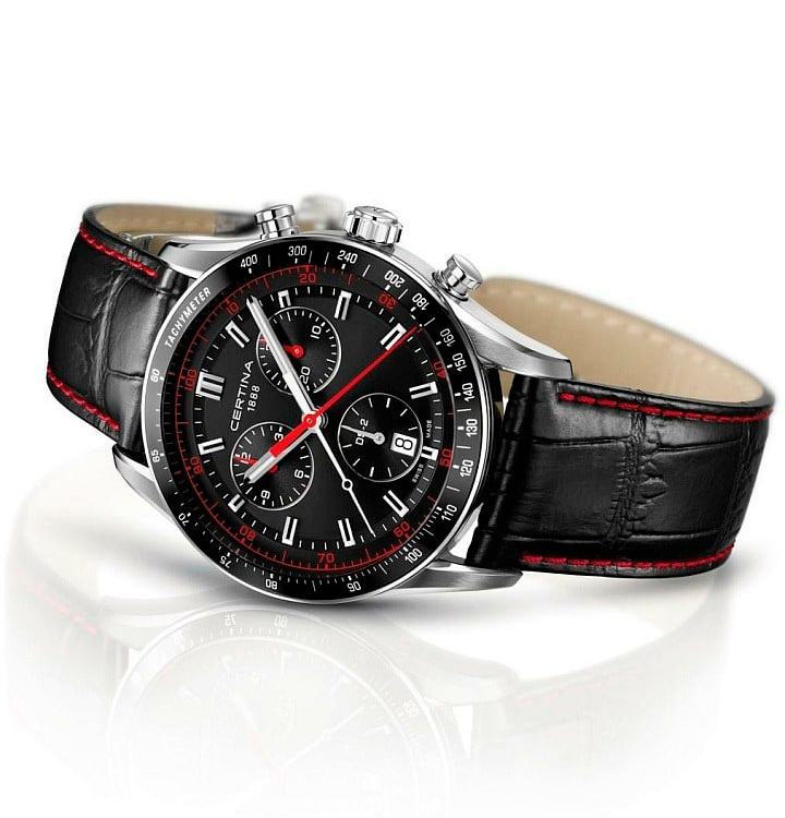 Корпус: Корпус из нержавеющей полированной/матовой стали. Безель с тахиметрической шкалой на чёрном алюминиевом кольце . Чёрный циферблат с серебристыми стрелками и рисками. Люминесцентное покрытие часовой, минутной стрелок и рисок. Сапфировое стекло с антибликовым покрытием. Диаметр 41 мм. Водостойкость 100 м. Система DS.