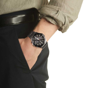 Ремешок: Металлический браслет. Раскладывающаяся застежка, расстегиваемая одним касанием. Предохранительная защелка на браслете препятствует случайному расстегиванию.
