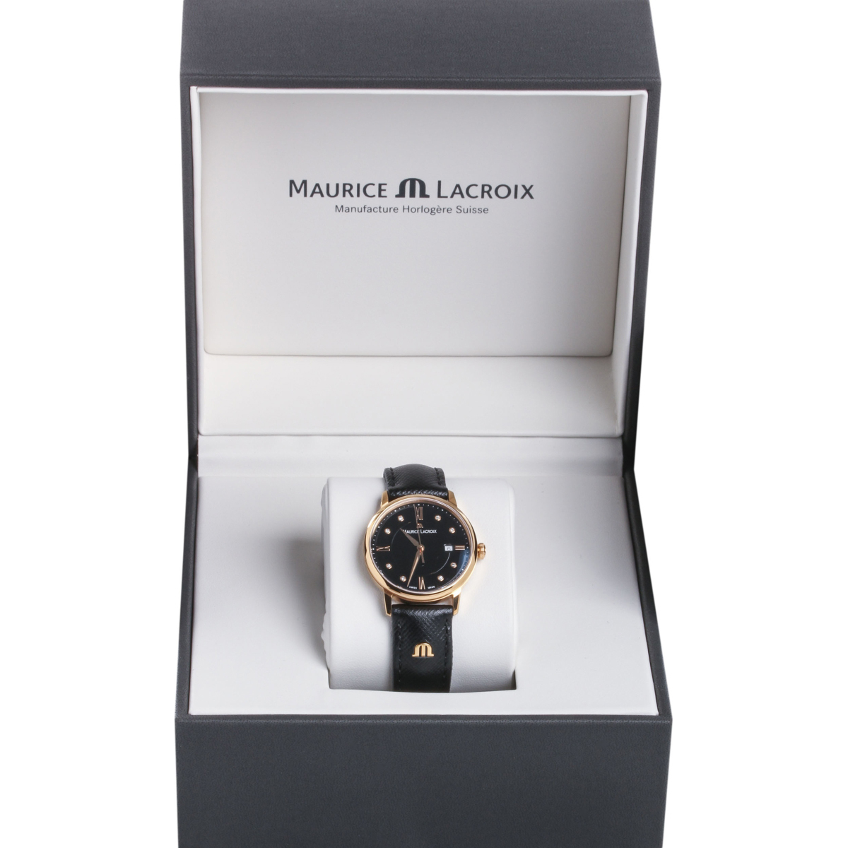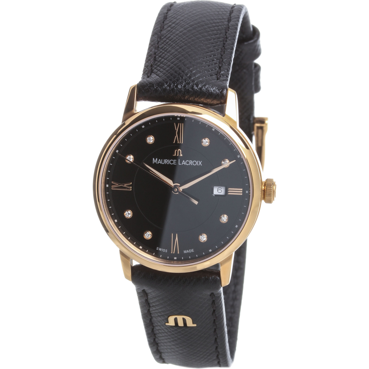 Корпус: Корпус сталь с PVD покрытием. Чёрный циферблат с золотистыми стрелками, украшен 8 бриллиантами. Сапфировое стекло. Диаметр 30 мм. Водонепроницаемость 50 метров.
