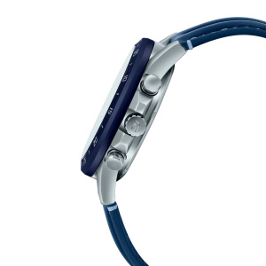 Функции: Центральные часовая и минутная стрелки, секундная стрелка вынесена на малый циферблат. Апертура даты в позиции 4 часов. Секундомер. Индикатор низкого заряда батареи.
