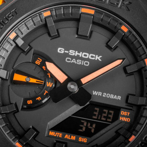 Корпус: Новая серия часов со структурой Carbon Core Guard. Корпус восьмиугольной формы выполнен из высокопрочного мелкодисперсного полимерного материала чёрного цвета, содержащего углеродное волокно, более прочный и, в то же время, более легкий. Оранжевые метки и стрелки со светонакопительным покрытием Neobrite. Двойная подсветка Super illuminator с функцией Afterglow (для подсветки не нужно удерживать кнопку, время послесвечения настраивается 1,5 или 3 сек): одновременно подсвечивается аналоговый циферблат и цифровой дисплей. Размер корпуса (Д × Ш × В) 48,5 × 45,4 × 11,8 мм. Водонепроницаемость 200 метров.