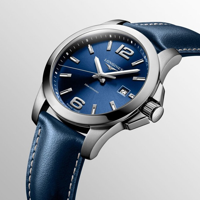 Ремешок: Кожаный ремень синего цвета. Тройная застежка с системой блокировки и кнопкой.