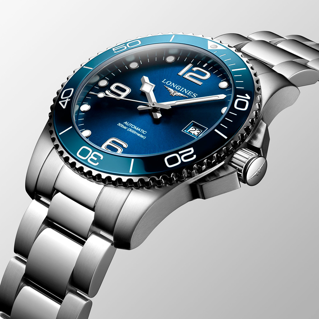 Корпус: Корпус выполнен из высококачественной стали 316L. Однонаправленный безель вращается со щелчками только в направлении против хода стрелок, боковая грань с ребристой насечкой, фронтальная поверхность из керамики синего цвета с контрастной разметкой, на отметке “12 часов” находится капсула со светящимся в темноте фотолюминесцентным элементом. Синий циферблат с узором sunray. Посеребренные полированные стрелки с покрытием Super-LumiNova®. Устойчивое к царапинам сапфировое стекло с многослойным антибликовым покрытием с обеих сторон. Диаметр 41 мм. Водонепроницаемость 300 метров, завинчивающаяся заводная коронка.