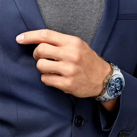 Ремешок: Нержавеющая сталь марки 316L. Складная застежка с двойной блокировкой, встроенная система увеличения длины.