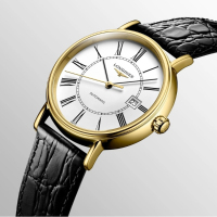 Корпус: Нержавеющая сталь и желтое PVD-покрытие, сапфировое стекло. Размер 40 мм, водонепроницаемость 30 метров. Циферблат белый матовый с римскими цифрами обеспечивает отличную читаемость. Прозрачная задняя крышка с сапфировым стеклом.