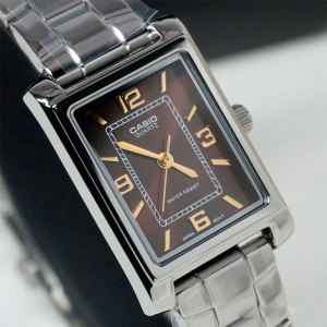 Корпус: Корпус изготовлен из гипоаллергенной латуни. Коричневый циферблат выполнен по технологии Sunray (солнечные лучи). Золотистые метки в виде штрихов и арабских цифр. Прочное минеральное стекло обеспечит защиту часов от повреждений. Размер 29x44x7,4 мм. Водонепроницаемость: 30 м.