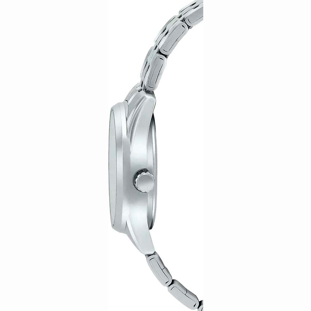 Корпус: Корпус часов из гипоаллергенной латуни с хромированным покрытием. Циферблат выполнен по технологии Sunray (солнечные лучи) розового цвета. Метки в виде штрихов и стрелки выполнены из полированной стали с покрытием. Минеральное стекло защищает циферблат от повреждений. Габаритные размеры: 30x36 мм, толщина 8,9 мм, вес 69 г. Водозащита: 5 ATM.