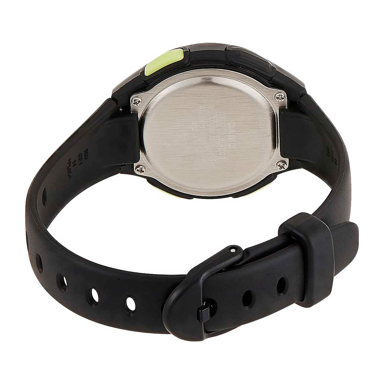 Корпус: Корпус из полимерного материала чёрного цвета. Циферблат чёрного цвета вокруг дисплея. Дисплей серого цвета, цифры чёрного. Акриловое стекло. Габаритные размеры: 38,1х34,6мм, толщина 11,3мм, вес 20г. Водозащита: 50 м.