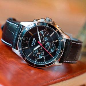 Ремешок: Кожаный ремешок чёрного цвета, стандартная застежка.