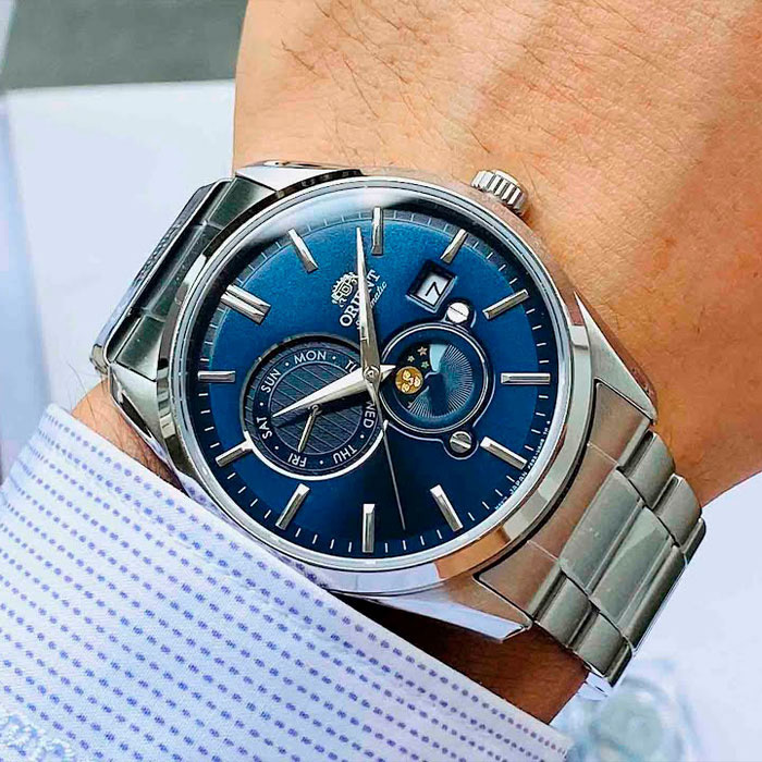 Корпус: Корпус из высококачественного стального сплава с высокими антикоррозийными свойствами. Циферблат синего цвета с часовыми метками в виде штрихов. Сапфировое стекло устойчивое к царапинам. Завинчивающаяся прозрачная задняя крышка. Диаметр корпуса: 41,5 мм. Толщина: 12 мм. Водонепроницаемость: 50 м.