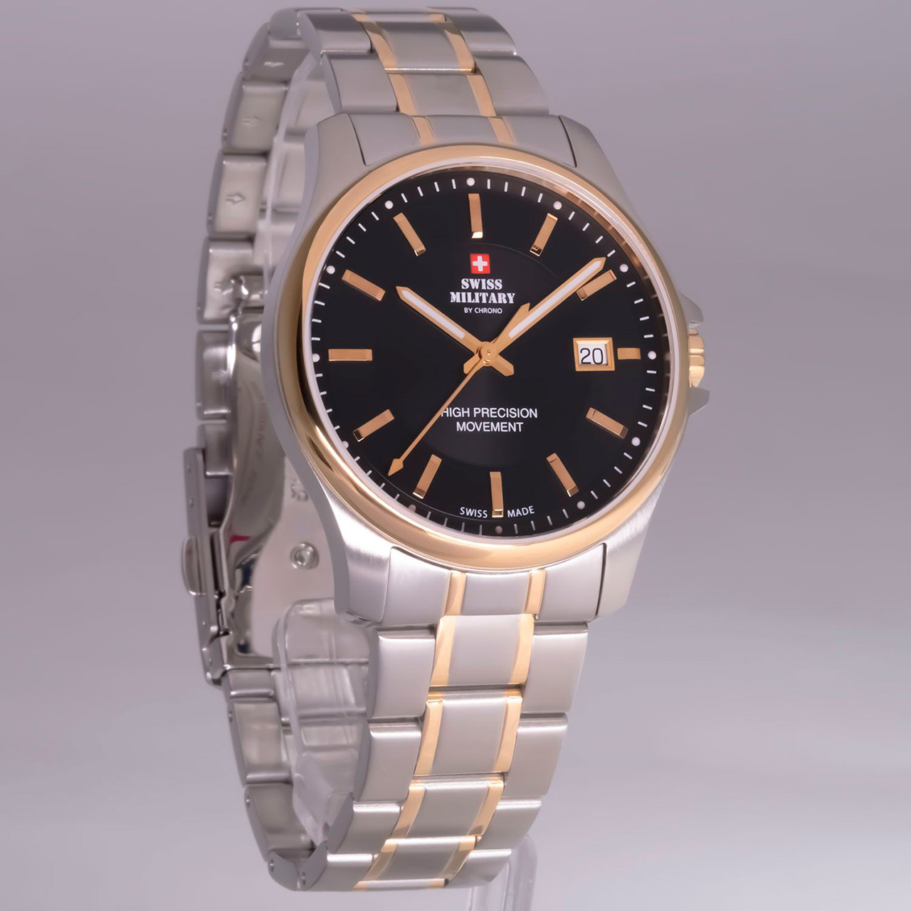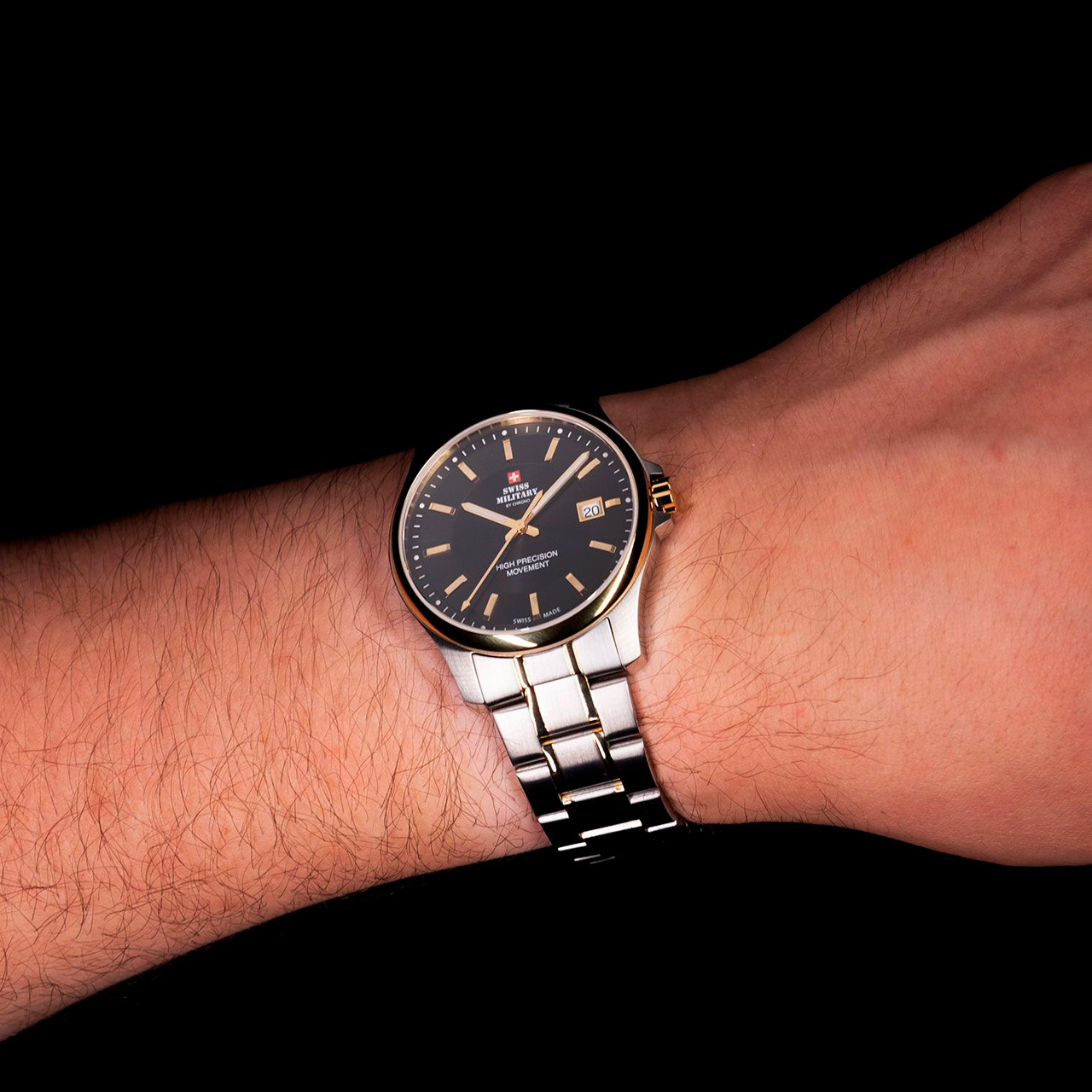 Ремешок: Браслет со звеньями из нерж. стали с частичным PVD-покрытием цвета золота, браслетная застежка, раскладывающаяся при нажатии на кнопки по бокам.