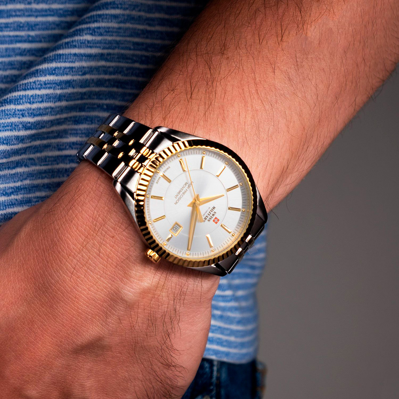 Ремешок: Браслет из нержавеющей стали с частичным PVD покрытием цвета желтого золота, с раскладывающейся застежкой.