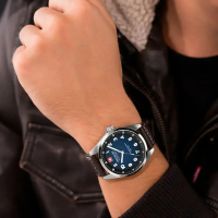 Корпус: Корпус выполнен из нержавеющей стали. Синий циферблат. Стрелки и метки в виде арабских цифр с люминесцентным покрытием, которое светится в темноте после непродолжительной зарядки на свету. Сапфировое стекло, особо устойчивое к царапинам. Диаметр корпуса составляет 42 мм. Водостойкость WR 100.