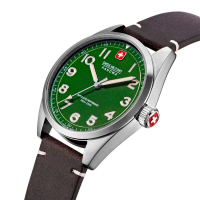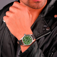 Корпус: Круглый корпус выполнен из нержавеющей стали, поверхности с матовой шлифовкой сатинированием и глянцевой полировкой. Зелёный циферблат. Стрелки и метки в виде арабских цифр с люминесцентным покрытием, которое светится в темноте после непродолжительной зарядки на свету. Сапфировое стекло защищает циферблат от царапин и обеспечивает отличную читаемость при любом освещении. Рифленая заводная головка. Завинчивающаяся задняя крышка. Диаметр корпуса составляет 42 мм. Водозащита до 10 ATM (100 метров) делает часы подходящими для плавания.