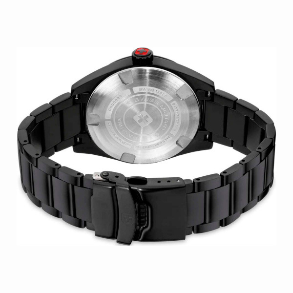 Ремешок: Браслет с литыми звеньями из нержавеющей стали с PVD покрытием чёрного цвета. Застежка, раскладывающаяся при нажатии на кнопки.