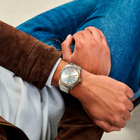 Ремешок: Браслет с литыми звеньями из нержавеющей стали с частичным IP покрытием, застежка раскладывающаяся при нажатии на кнопки.