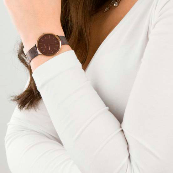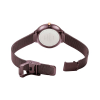Корпус: Корпус выполнен из стали с IP покрытием. Сапфировое стекло повышенной прочности. Коричневого цвета циферблат с золотистыми стрелками и часовыми индексами. Диаметр: 32 мм. Водонепроницаемость: 30 метров.