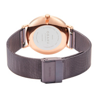Корпус: Корпус выполнен из стали с IP покрытием. Минеральное стекло повышенной прочности. Коричневого цвета циферблат с золотистыми стрелками, украшен 4 кристаллами, расположенными в местах часовых меток. Диаметр: 37 мм. Водонепроницаемость: 30 метров.