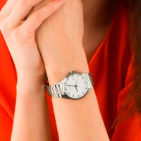 Корпус: Круглый корпус из суперлегкого титана. Белый циферблат. Арабская индикация времени. Минеральное стекло. Диаметр корпуса 36 мм. Водостойкость WR 100 м.