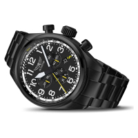 Ремешок: Браслет с литыми звеньями из нержавеющей стали 316L с покрытием черного цвета и сатинированием, ширина – 22-20 мм. Браслетная застежка, раскрывающаяся нажатием кнопок с системой двойной блокировки, с гравированной эмблемой Aviator.