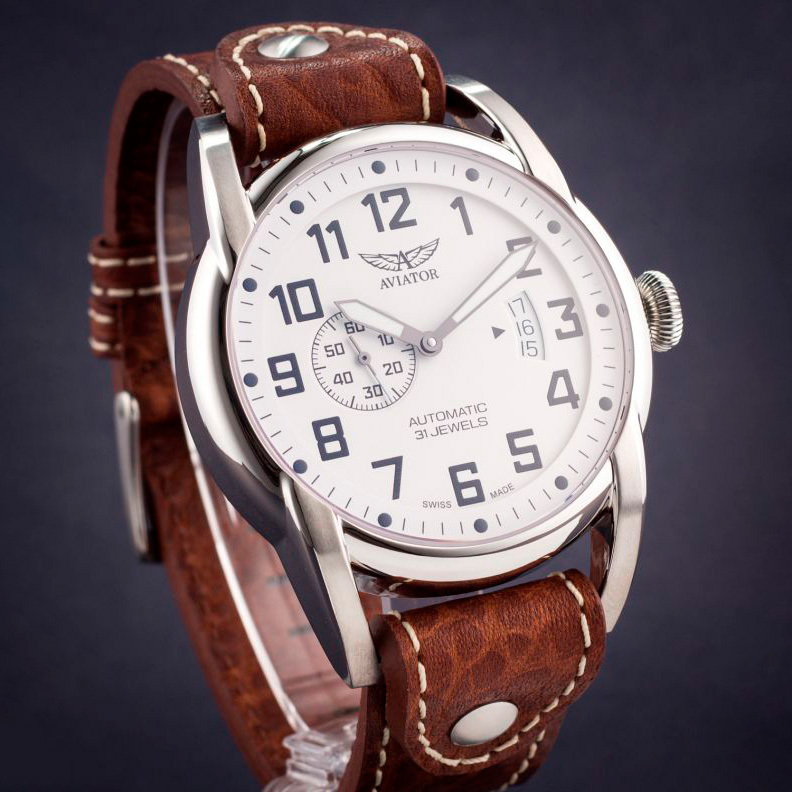 Функции: Индикация часов и минут при помощи центральных стрелок. Секундная стрелка вынесена на отдельный циферблат. Дата.