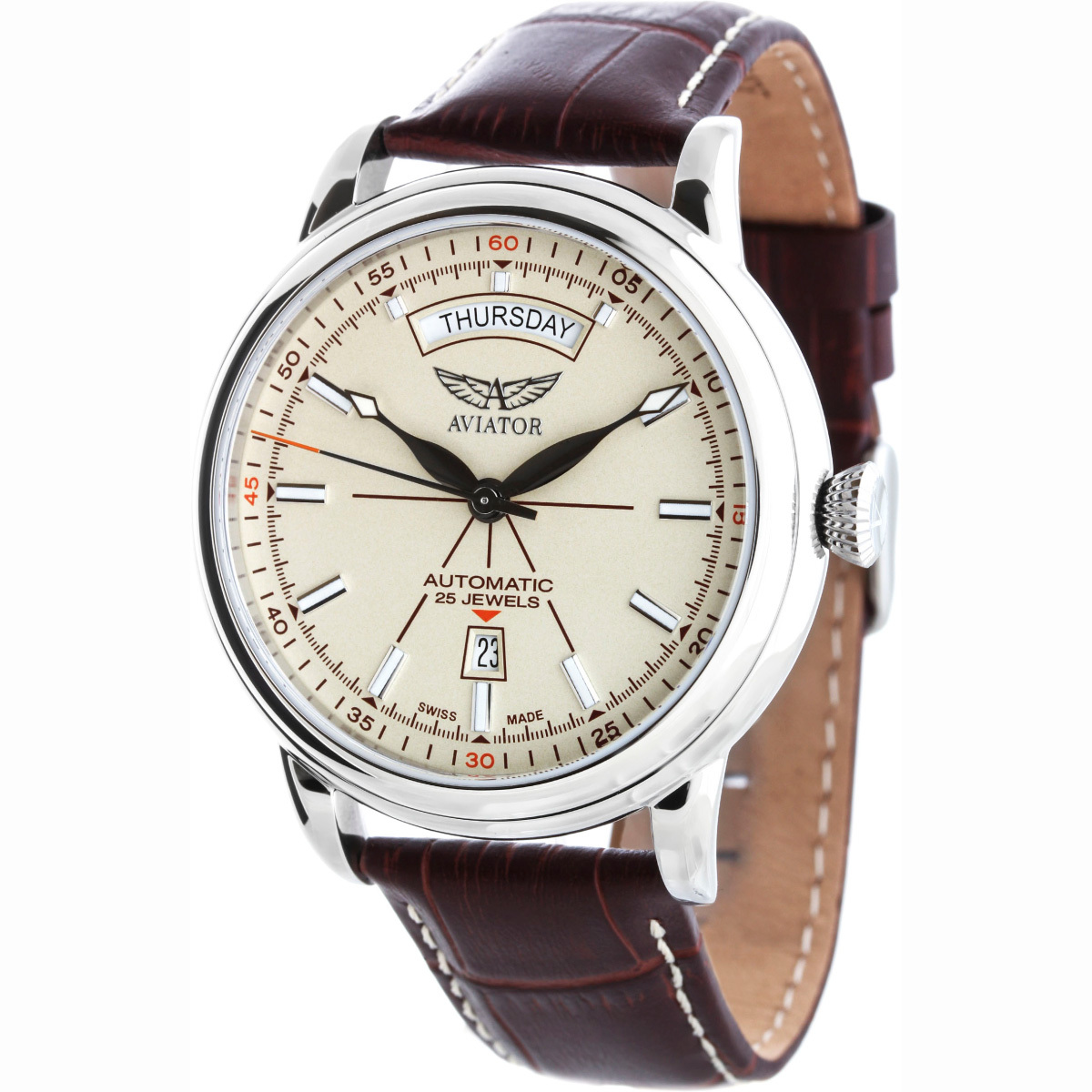 Корпус: Корпус круглой формы выполнен из нержавеющей стали марки 316L. Переливающийся бежевого цвета циферблат. Аппликация часовых индексов и печатная разметка в стиле авиационных приборов. Стрелки и часовые метки имеют светящееся в темноте люминесцентное покрытие SuperLuminova. Сапфировое стекло с двусторонним антибликовым покрытием имеет повышенную устойчивость к возникновению царапин. Диаметр: 45 мм. Водозащита: 100 метров.