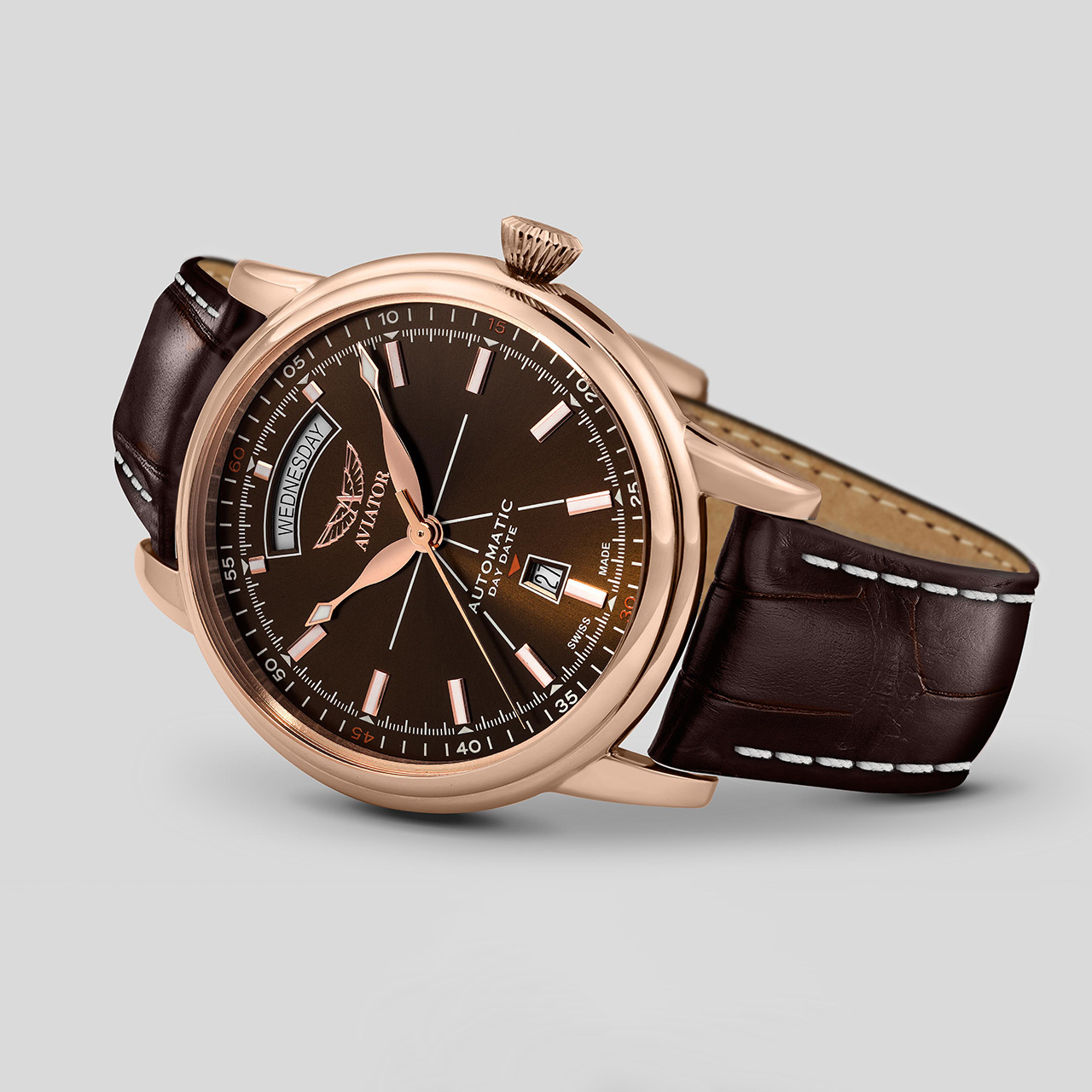Корпус: Корпус круглой формы выполнен из нержавеющей стали марки 316L с PVD покрытием. Коричневый циферблат. Аппликация часовых индексов и печатная разметка в стиле авиационных приборов. Стрелки и часовые метки имеют светящееся в темноте люминесцентное покрытие SuperLuminova. Сапфировое стекло с двусторонним антибликовым покрытием имеет повышенную устойчивость к возникновению царапин. Переводная коронка с двойным уплотнителем для дополнительной защиты, задняя крышка с прозрачным окном имеет винтовое соединение с корпусом.Диаметр 45 мм. Водозащита 100 метров.