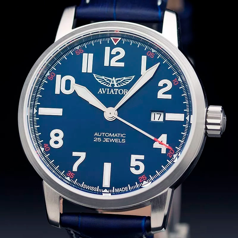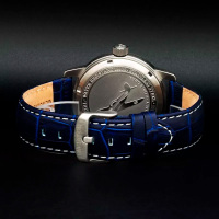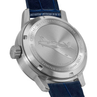 Корпус: Корпус круглой формы выполнен из матовой нержавеющей стали марки 316L. Циферблат синего цвета с шлифовкой “солнечные лучи”. Аппликация часовых индексов и печатная разметка в стиле авиационных приборов. Стрелки и часовые метки имеют светящееся в темноте люминесцентное покрытие SuperLuminova. Сапфировое стекло с двусторонним антибликовым покрытием имеет повышенную устойчивость к возникновению царапин. Переводная коронка с двойным уплотнителем для дополнительной защиты. Задняя крышка украшена гравировкой самолета. Диаметр 42 мм. Водозащита 100 метров.