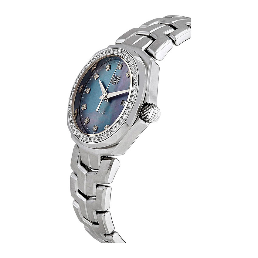 Корпус: Стальной корпус с чередующейся отделкой. Плоское сапфировое стекло с антибликовым покрытием. Синий перламутровый циферблат, накладные полированные граненые индексы, 12 бриллиантов. Неподвижный безель из полированной стали с 48-ю бриллиантами. Диаметр 32 мм. Водостойкость 100 м.