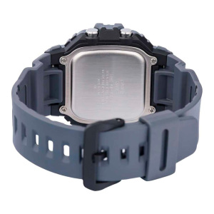 Корпус: Противоударный корпус защищает механизм от ударов и вибрации. Корпус часов изготовлен из полимерного материала серого цвета с чёрным циферблатом. Пластиковое стекло. Габаритные размеры: 48,6х52,5 мм, толщина 15,2мм, вес 48г. Водонепроницаемость 100 М.