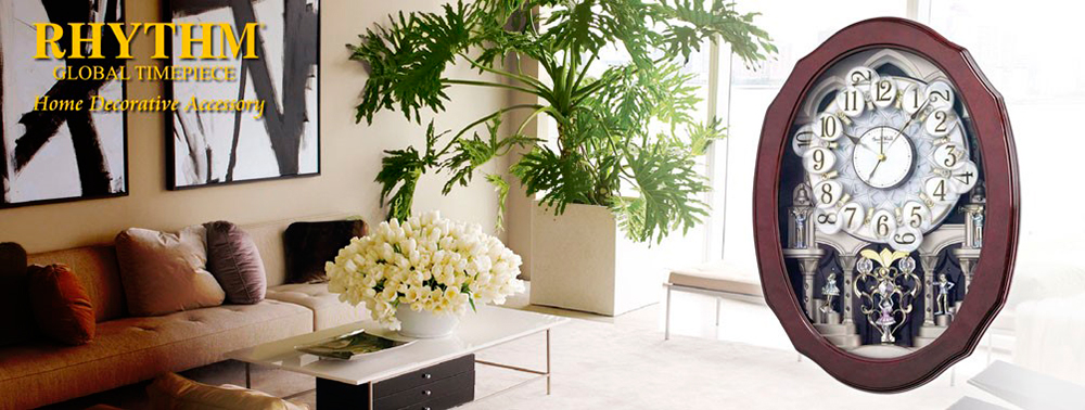 Творения часовой компании Rhythm Watch. Co. Ltd по достоинству оценят ценители качественных и стильных интерьерных часов. Модельный ряд представлен всем спектром моделей: разнообразием корпусов, классическими настенными, настольными, каминными, заключенными в корпуса из лакированного дерева с резными деталями, украшенными кристаллами Swarovski.