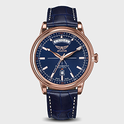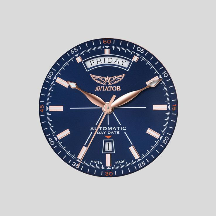 AVIATOR Douglas Day Date отличается отделкой «Солнечные лучи», элегантно изогнутым окошком, указывающим день, и окошком календаря в форме трапеции. Видимость и читабельность являются ключевыми атрибутами коллекции Douglas Day Date. Они объединяет дизайн и функциональность в стиле ар–деко: от полированных металлических индексов до декоративных тонких акцентов на стрелках. Эти часы, несомненно, неподвластны времени своей утонченностью.