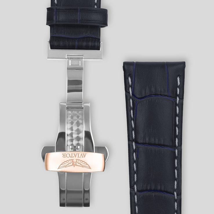 - Синий ремешок из телячьей кожи.