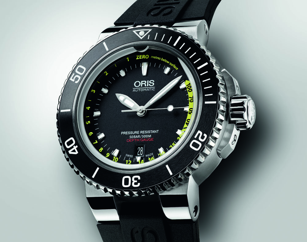 Инженеры Oris нашли способ применить закон Бойля-Мариотта в новой модели, и получили компактный высококлассный инструмент с индикаторами глубины и времени