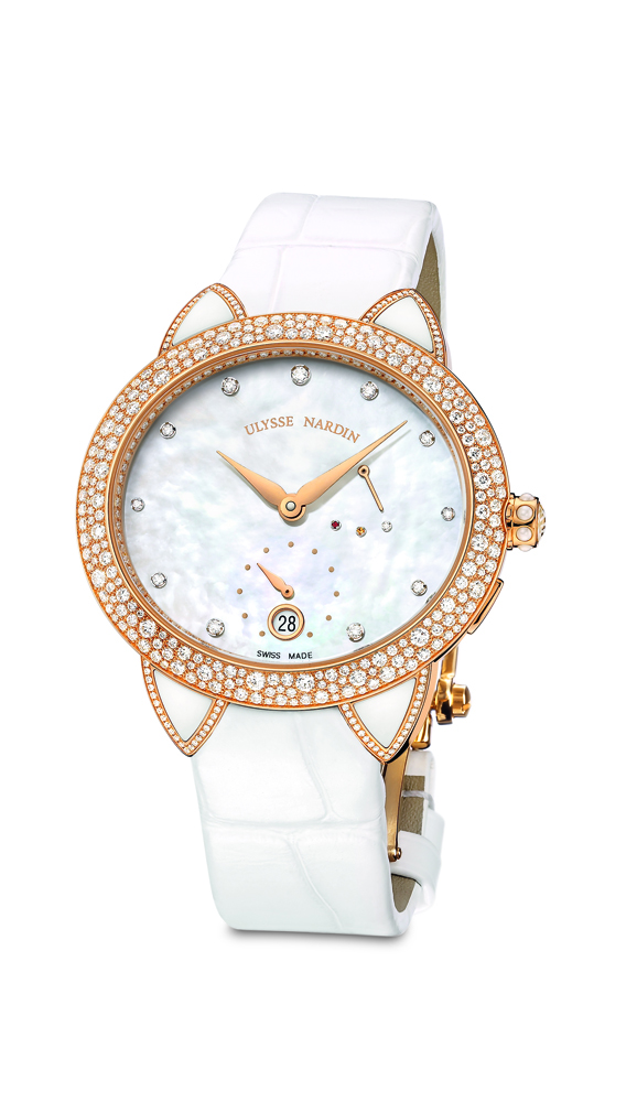 Первый истинно женский калибр мануфактуры Ulysse Nardin. Идея создания уникального механизма принадлежит президенту компании – госпоже Шнайдер. В модели Jade используется новый мануфактурный калибр UN-310, оснащенный специальной кнопкой, расположенной на корпусе, рядом с отметкой «4 часа», которая отвечает за изменения функций заводной головки: завод механизма; установка даты в обоих направлениях; установка времени. Каждая установка параметров происходит путем простого нажатия кнопки и последующего вращения заводной головки, без необходимости выкручивать ее всякий раз, когда того требует настройка часов. Удобно, быстро и спасает маникюр!
