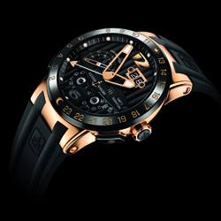 Украшением этой модели служит мануфактурный механизм с оригинальным дисплеем отображения времени. «Числовое» усложнение модели IO Jumping Hours имеет характерную особенность, а именно – часы и минуты отображаются в двух больших окошках. Таким образом, стрелки здесь заменены двумя вращающимися дисками, на которых отображены часы и минуты. По завершении определенного отрезка времени, цифра, обозначающая часы, немедленно «прыгает», тогда как отображение минут происходит при помощи постоянно вращающегося диска. Особенно эффектно модель выглядит в розовом золоте.