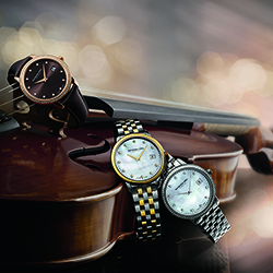 Циферблаты диаметром 34 мм просто и изысканно украшены листами партитуры, расположенными под «дирижерской палочкой», которая непрерывно перемещается вперед и назад над индексами из бриллиантов. Конечно, трогает женское сердце и коллекция The Balmazing II со сверкающими арабесками от Balmain – но такие часы вряд ли подходят для будней.