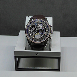 В Базель он неожиданно для всех привез механизм El Primero 21 с двумя колесными передачами, 5-герцевым спуском для отсчета времени и 50-герцевым спуском хронографа, тем самым, которым совсем недавно гордились в компании TAG Heuer, также входящей в холдинг LVMH. Но технологию одногруппников внедрили с использованием фирменных ноу-хау. Например, балансовой спирали из композита CNT (Carbon Nano-Tubes) на графеновой матрице: этот революционный материал, как и кремний, не подвержен магнитным и температурным воздействиям, но при этом гораздо прочнее и эластичнее. А в конструкции заменили колонное колесо на кулачковую систему, позволившую сделать механизм тоньше и неприхотливее.