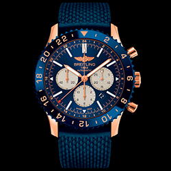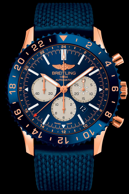 «Хронограф капитана самолета» – Chronoliner B04 – взмывает ввысь в новой эксклюзивной версии, выпущенной ограниченным тиражом в 250 экземпляров. Авиационный хронограф с привлекающим внимание циферблатом насыщенного синего оттенка и элементами из 18-каратного золота, керамический безель аналогичного цвета глубокой синевы, мануфактурный калибр Breitling B04 с функциональной системой двух часовых поясов – яркая новинка от швейцарской марки Breitling.