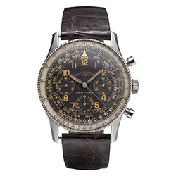 На циферблате самых первых Navitimer, которые были «полностью разработаны в соответствии со спецификациями AOPA», не было ни наименования, ни логотипа компании Breitling. Вместо этого на видном месте – в положении «12 часов» – располагался логотип ассоциации AOPA.