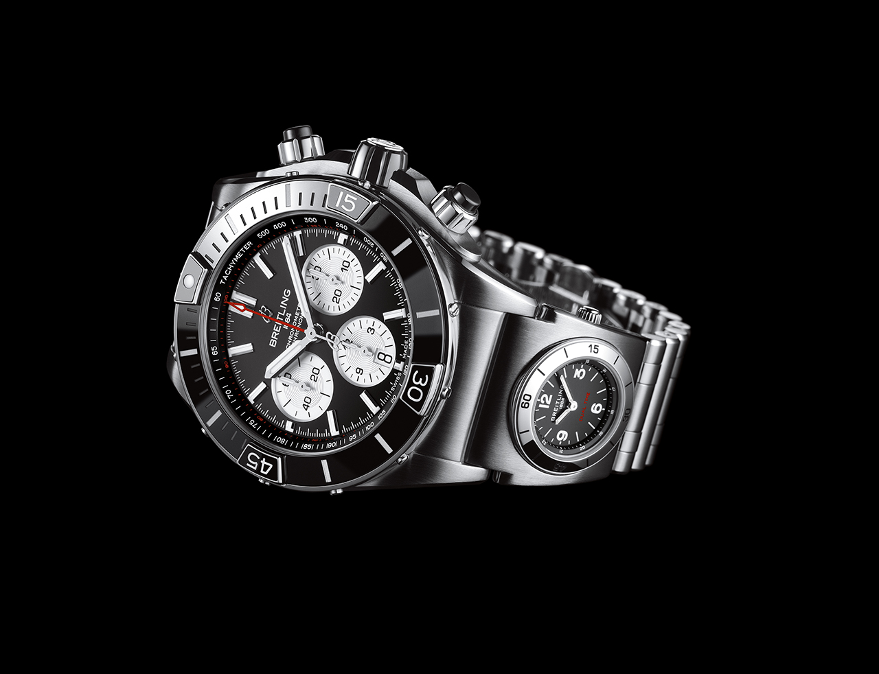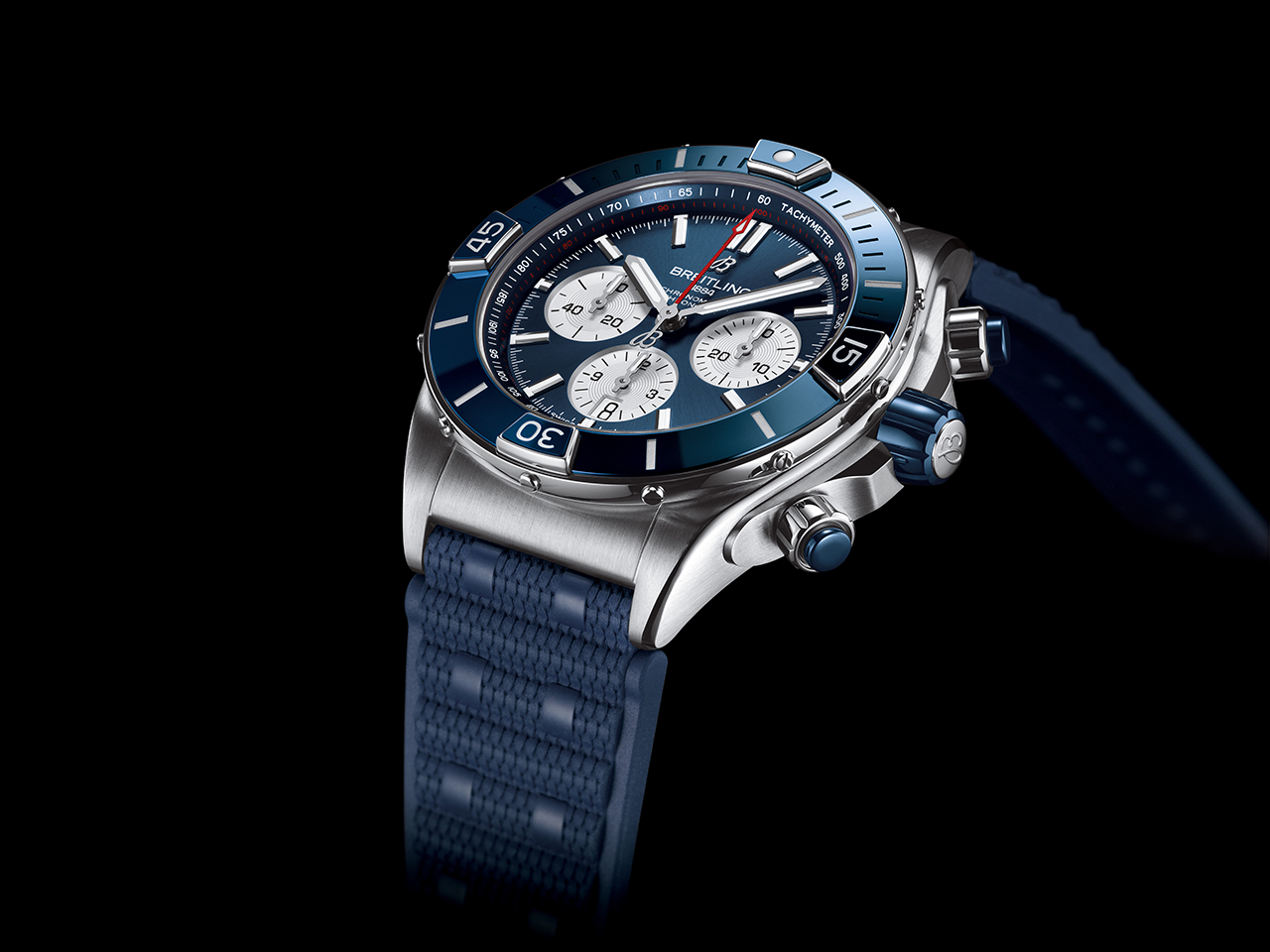Как и в оригинальной версии Chronomat, райдеры защищены сапфировым стеклом. Те, что расположены у отметок «3 часа» и «9 часов», взаимозаменяемы, поэтому их можно использовать как для обратного, так и для прямого отсчета времени. Смелый характер коллекции Super Chronomat подчеркивается диаметром корпуса 44 мм. В новой модели реализованы такие нововведения, как безель из нержавеющей стали с керамической инкрустацией (впервые в Chronomat) и возможность выбора ремешка – каучукового в стиле Rouleaux или оригинального металлического с клипсой-бабочкой. Новый каучуковый ремешок создан с использованием новейшей технологии литья под давлением. Представлены три варианта текстуры – матовая, глянцевая и в стиле плетения – они придают модели особый стиль.
