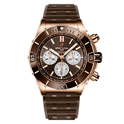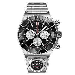 Часы Super Chronomat B01 44 выполнены в трех вариантах. Два – в корпусе из нержавеющей стали с черным или синим цветом циферблата и безеля. Третий вариант модели сочетает в себе насыщенный коричневый оттенок циферблата и безеля и корпус из 18-каратного красного золота. Все экземпляры часов оснащены контрастными серебристыми счетчиками хронографа и мануфактурным калибром Breitling 01, сертифицированным Швейцарским институтом официального тестирования хронометров (COSC) и обладающим запасом хода около 70 часов. Водонепроницаемость этой модели Super Chronomat составляет до 200 метров.