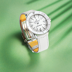 Цветовая палитра сезонной капсульной коллекции для женщин – это летняя свежесть белого, цвет морской волны, мятно-зеленый и цвет латте. Циферблаты, безели и ремешки всех моделей выполнены в тон. А настоящим «гвоздем программы», без сомнения, можно назвать модель мандаринового цвета. На индексы и стрелки этих часов нанесено люминесцентное покрытие Super-LumiNova®, которое образует «радугу» из желтого, зеленого, голубого, синего, фиолетового, красного и оранжевого цветов. Если желаете создать собственную цветовую комбинацию, вам понравится система быстрой замены ремешков из роскошной телячьей кожи Saffiano, которые выпускаются также лимонного оттенка и цвета малинового сорбета.